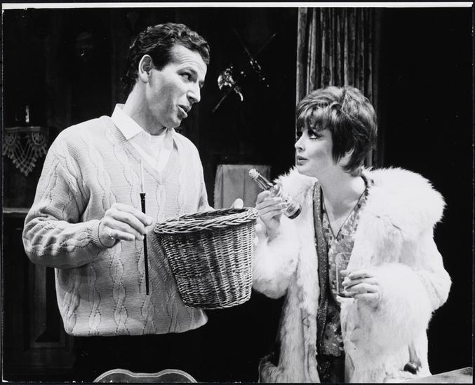 [Jill Haworth as Sally Bowles and Bert Convy as Clifford Bradshaw in "Cabaret".]