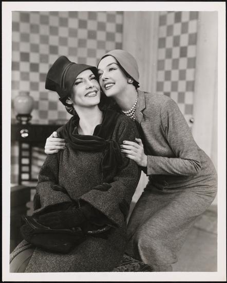 [Rosalind Russell as Auntie Mame and Polly Rowles as Vera Charles in "Auntie Mame".]