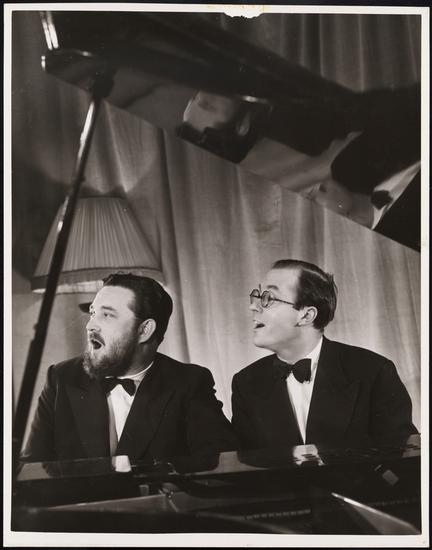 [Michael Flanders and Donald Swann in "At the Drop of a Hat".]