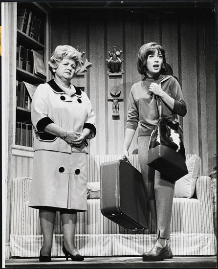[Nancy Dussault as Emily Kirsten and Mae Questel as Mrs. Helene Kirsten in "Bajour".]
