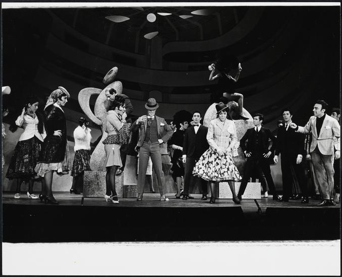 [Chita Rivera and Gus Trikonis during a dance rehearsal for "Bajour".]
