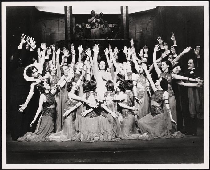 [Bettina Hall as Hope Harcourt with the Girls performing "The Gypsy in Me" number in "Anything Goes".]