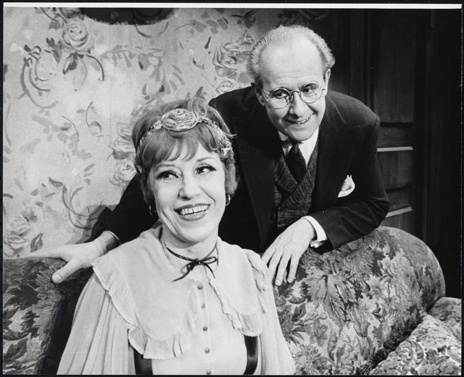 [Jack Gilford as Herr Schultz and Lotte Lenya as Fraulein Schneider in "Cabaret".]