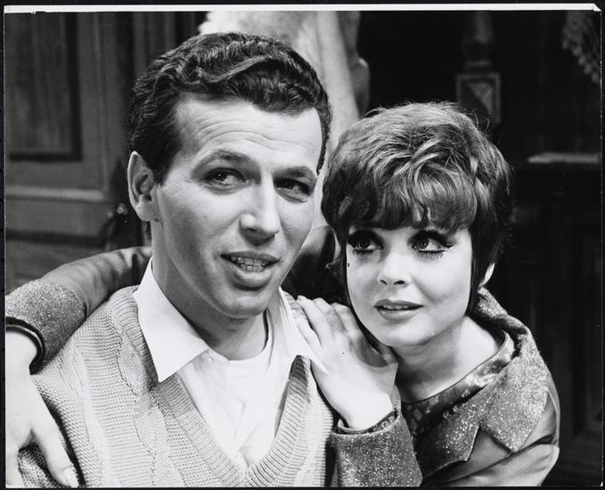 [Jill Haworth as Sally Bowles and Bert Convy as Clifford Bradshaw in "Cabaret".]