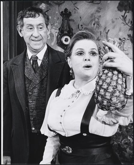 [Jack Gilford as Herr Schultz and Peg Murray as Fraulein Kost in "Cabaret".]