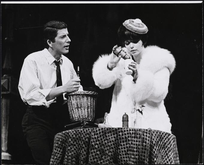 [Jill Haworth as Sally Bowles and Bert Convy as Clifford Bradshaw in "Cabaret".]