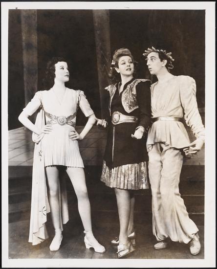 [Constance Moore as Antiope, Benay Venuta as Hippolyta, and Ray Bolger as Sapiens in "By Jupiter".]