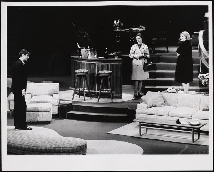 [Jason Robards, Jr. as Seymour Rosenthal, Faye Dunaway as Faith Prosper, and Ralph Meeker as Charles Taney in "But For Whom Charlie".]