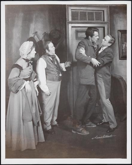 [Albert Phillips as Stephen A. Douglas, Lewis Martin as Ninian Edwards, and Raymond Massey as Abe Lincoln in "Abe Lincoln in Illinois".]
