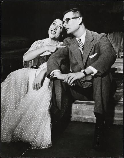 [Ethel Merman as Mrs. Sally Adams and Alan Hewitt as Pemberton Maxwell in "Call Me Madam".]