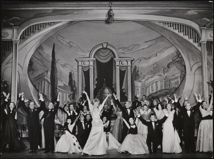 [Elaine Stritch as Mrs. Sally Adams and Kent Smith as Cosmo Constantine in "Call Me Madam".]
