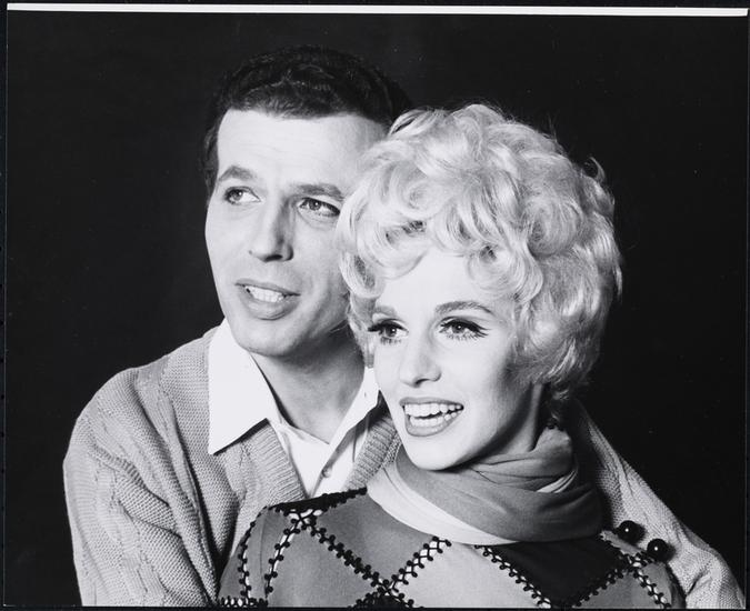 [Jill Haworth as Sally Bowles and Bert Convy as Clifford Bradshaw in "Cabaret".]