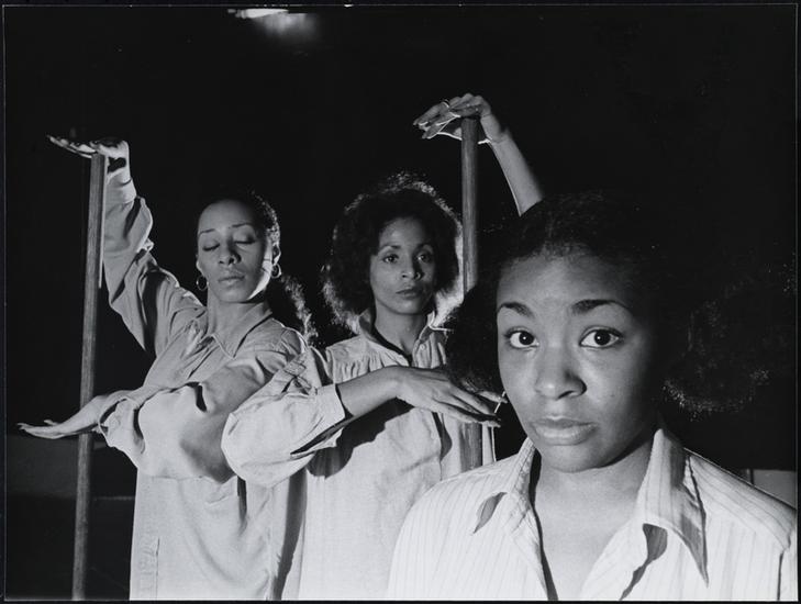 [Vinnette Carroll with performers in "But Never Jam Today".]