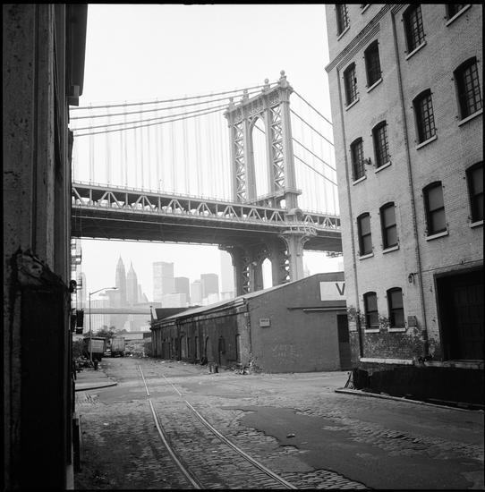 [Manhattan Bridge overpass and surrounding neighborhood.]