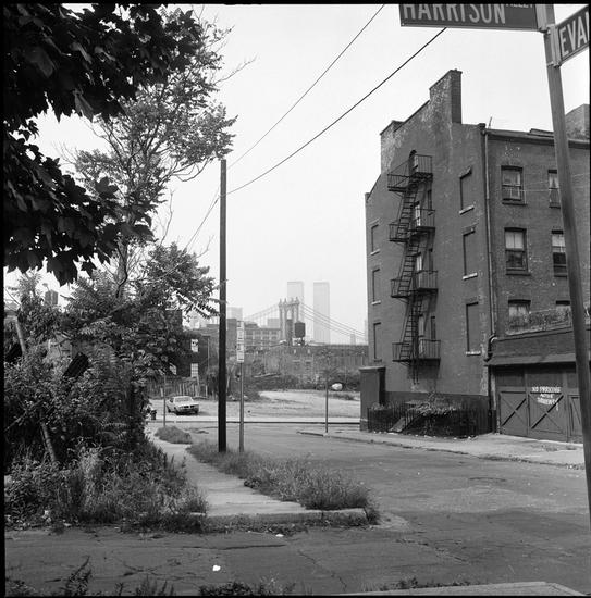 [View looking west over the East River toward Lower Manhattan from what is now Brooklyn Bridge Park, Brooklyn.]