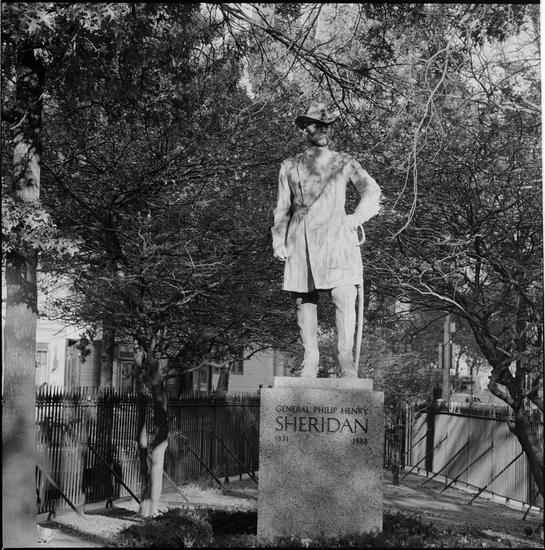 ["General Philip Henry Sheridan" bronze statue in Christopher Park.]