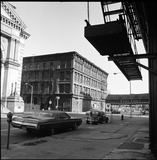 [Looking east on Broadway from Bedford Avenue and South 6th Street.]
