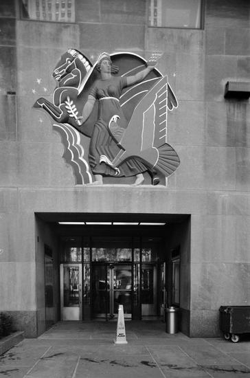 ["Pegasus" over the entrance to 1270 Avenue of the Americas.]