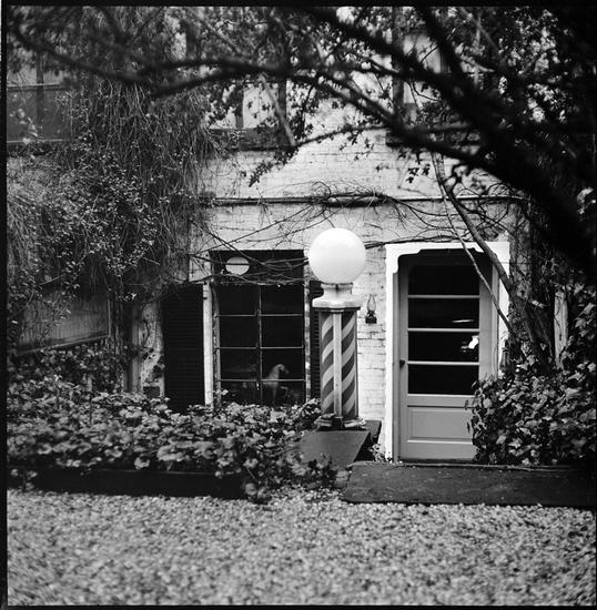 [Portrait of a man in the backyard of 208 East 35th Street.]