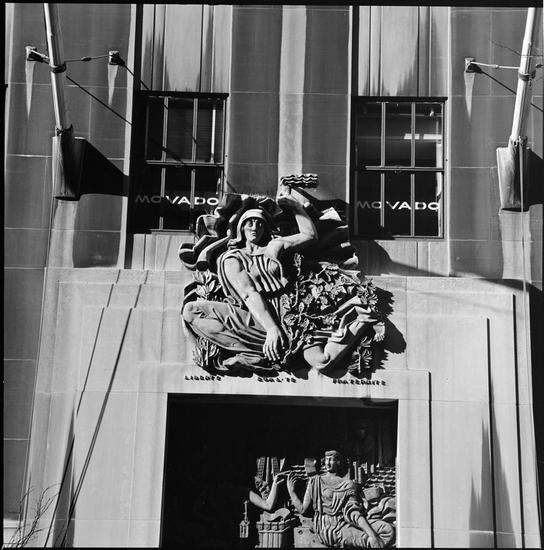 ["Industry and Agriculture" intaglio carving on the main entrance to 1 Rockefeller Plaza.]