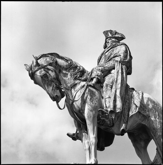 ["George Washington at Valley Forge" equestrian statue in Continental Army Plaza.]