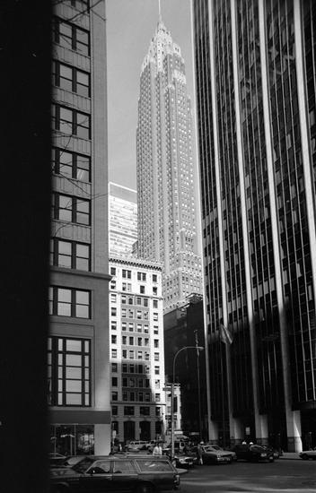 [Looking at 70 Pine Street from the steps of Federal Hall.]