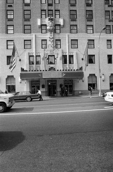 160 Central Park South. Essex House Hotel. View of lower stories and sidewalk café