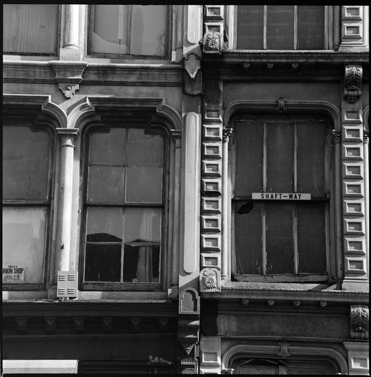 [254-260 Canal Street, detail of upper stories on Lafayette Street façade.]