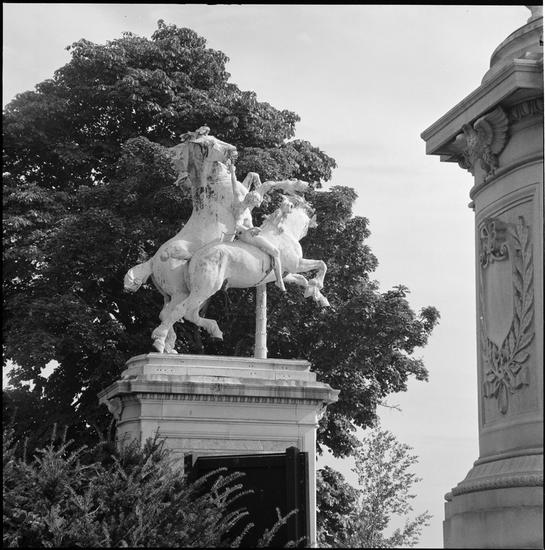 ["The Army: Genius of Patriotism Urging American Soldiers On To Victory" group on the south pedestal of the Soldiers' and Sailors' Memorial Arch.]