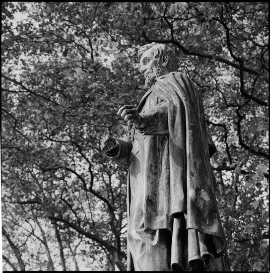 ["Abraham Lincoln" bronze statue on granite pedestal.]
