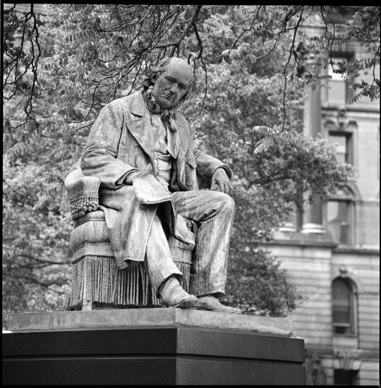 [Statue of Henry Ward Beecher near the Downtown Brooklyn post office.]