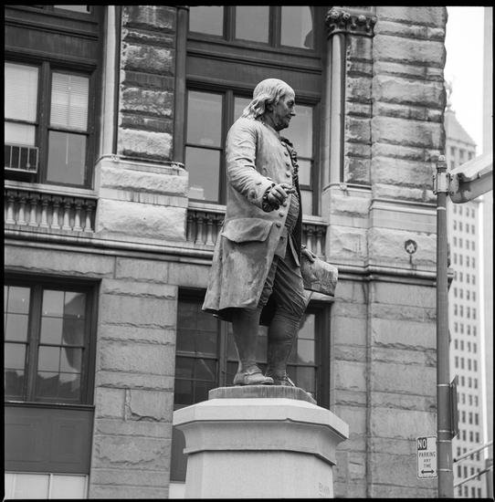 ["Prometheus" bronze statue in the lower plaza of Rockefeller Center.]