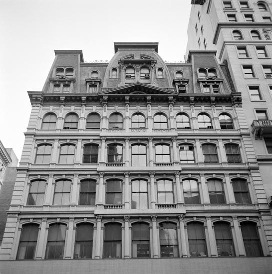[Round, windowed tower of 655-671 Sixth Avenue.]