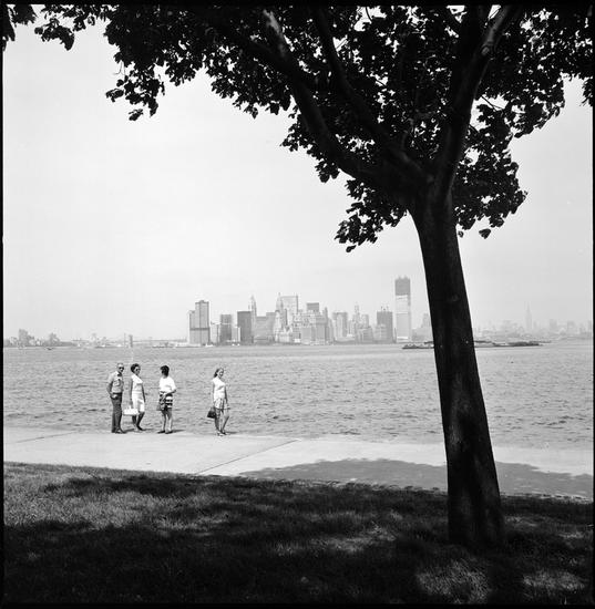 [Looking east across the Hudson River to the Lower Manhattan skyline.]