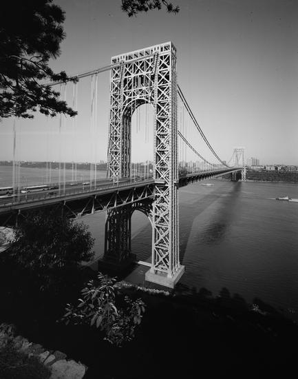 [Looking southeast over the Hudson River toward Upper Manhattan from the base of the New Jersey Palisades.]
