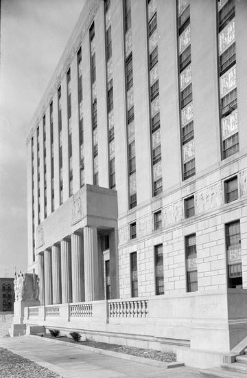 [The Bronx County Building, 851 Grand Concourse. Detail of façade.]