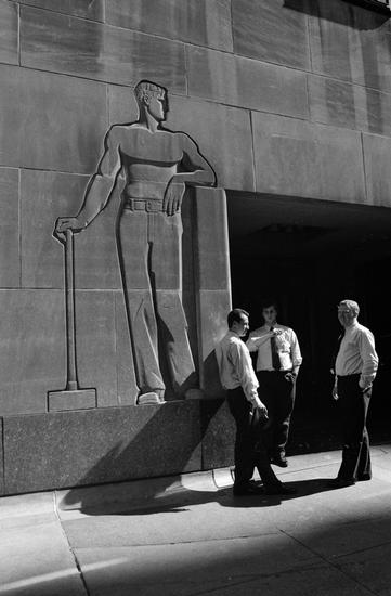 ["Industry and Agriculture" intaglio carving on the main entrance to 1 Rockefeller Plaza.]