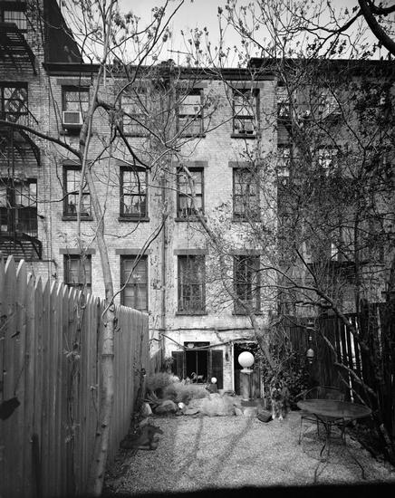 [Dog sitting in the backyard of 208 East 35th Street.]