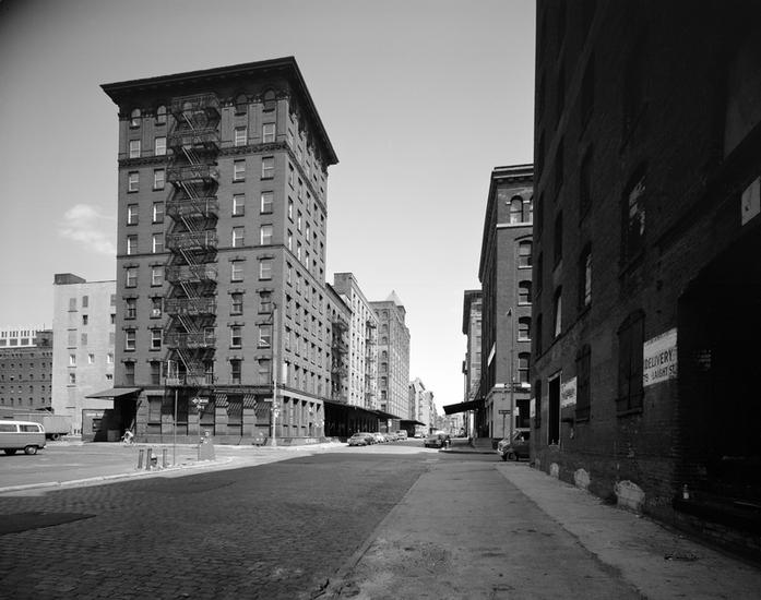 [Looking northwest from West Broadway to 140 Franklin Street.]