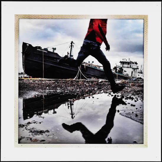 A partially submerged auto dealership in the aftermath of Hurricane Sandy, New Jersey