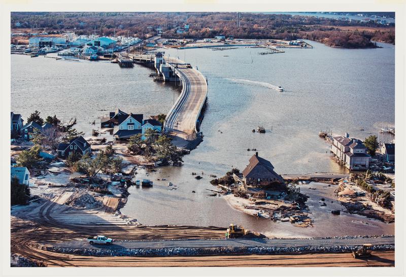 A partially submerged auto dealership in the aftermath of Hurricane Sandy, New Jersey