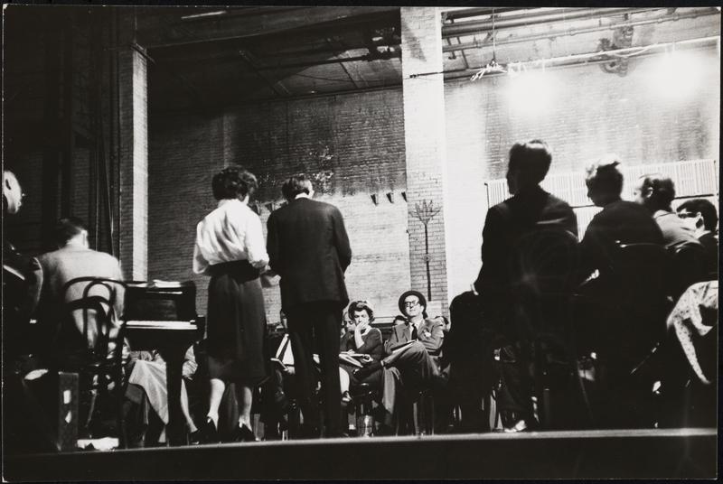 [Phil Silvers and Nancy Walker with an unidentified man during rehearsals for "Do Re Mi".]