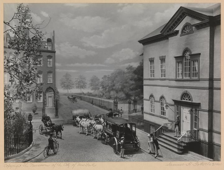 [Museum of the City of New York, interior. "Tally-Ho" streetcar on display.]