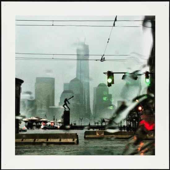 A partially submerged auto dealership in the aftermath of Hurricane Sandy, New Jersey