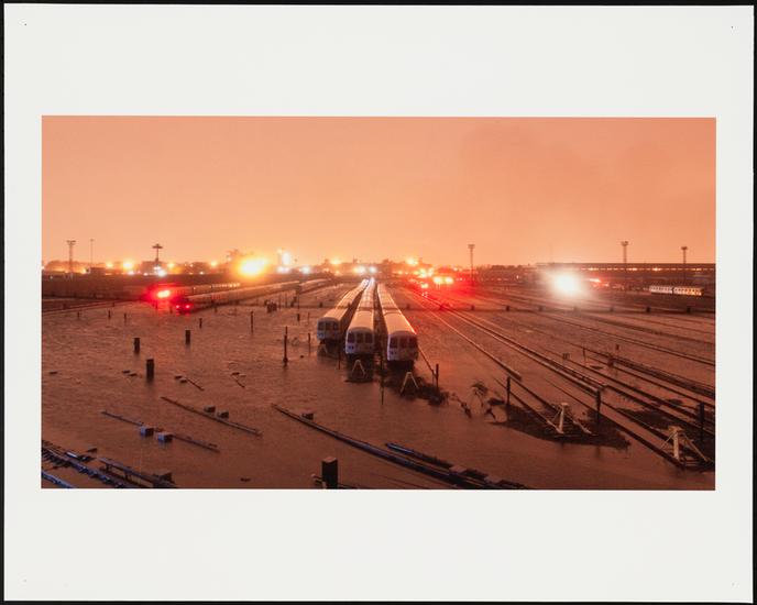 Queens Midtown Tunnel flooded by the Newtown Creek, Queens [Ash Street, looking north from the pedestrian walkway of the Pulaski Bridge.]