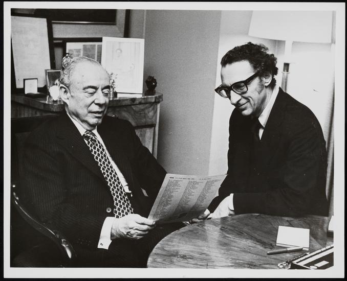 [Composer Richard Rodgers and lyricist Sheldon Harnick during a rehearsal for "Rex".]