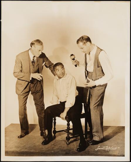 [Wardell Saunders as Charlie Teague, Don Appell as Ben Staggs and Lorraine MacMartin as Mrs. Harkness in "According to Law".]