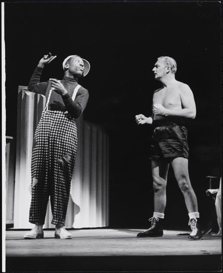 [Dick Shawn as Byron Prong and Carol Burnett as Hope Springfield in "Fade Out - Fade In".]