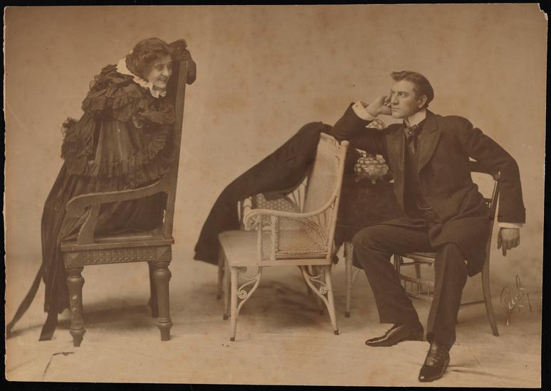 [Mary Mannering as Fay Zuliani and James K. Hackett as Sir George Lamorant in "The Princess and the Butterfly".]