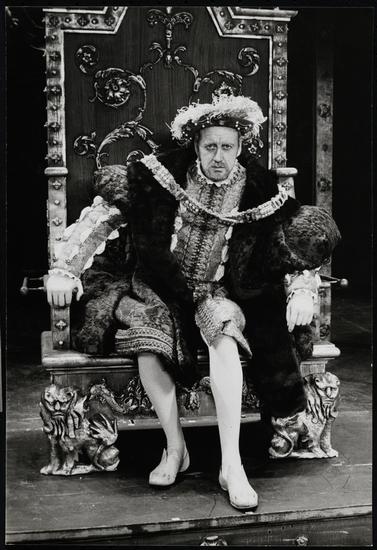[Nicol Williamson as Henry VIII, King of England and Michael John as Prince Edward in "Rex".]